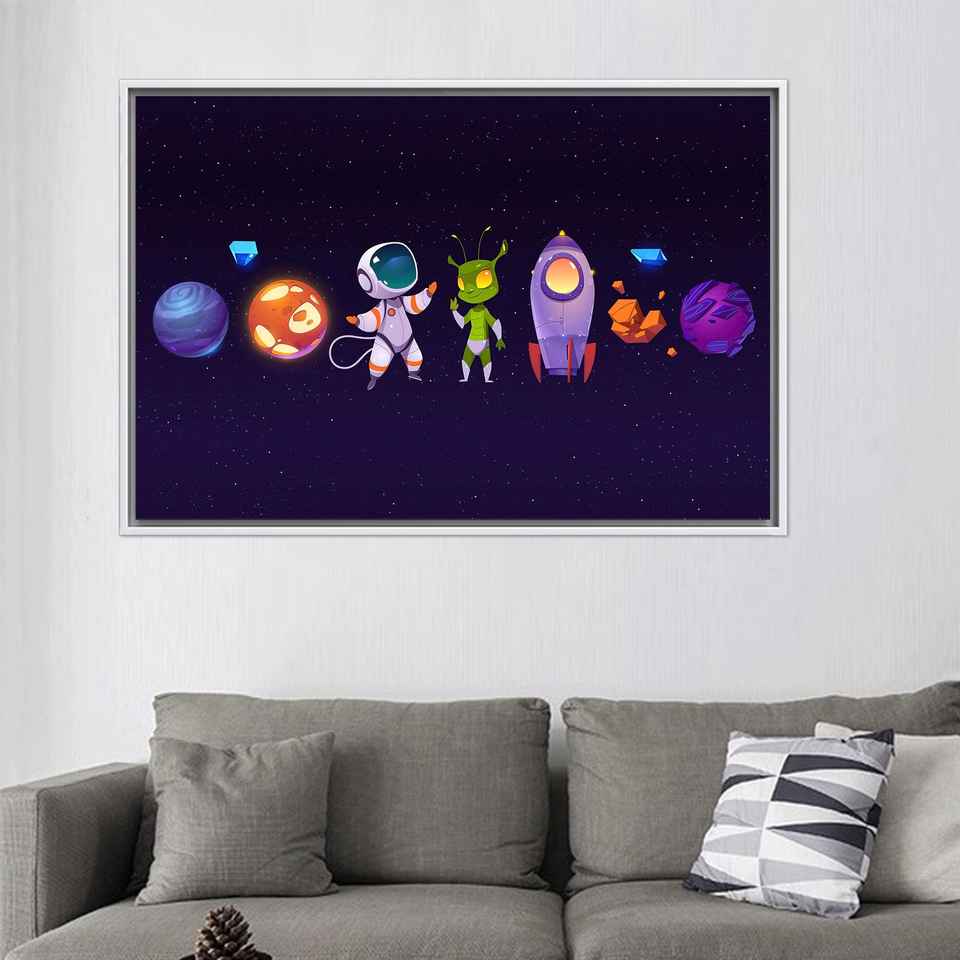 Elegant Astronaut Space Pattern Canvas Print, Perfect Kids Wall Art,1P:White Framed