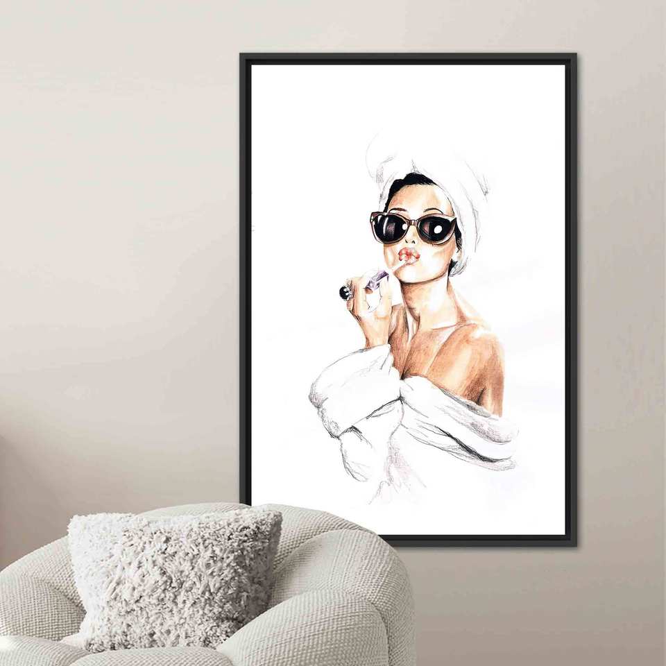 Elegant Audrey Hepburn Vogue Printed Canvas Art for Chic Decor,Black Framed