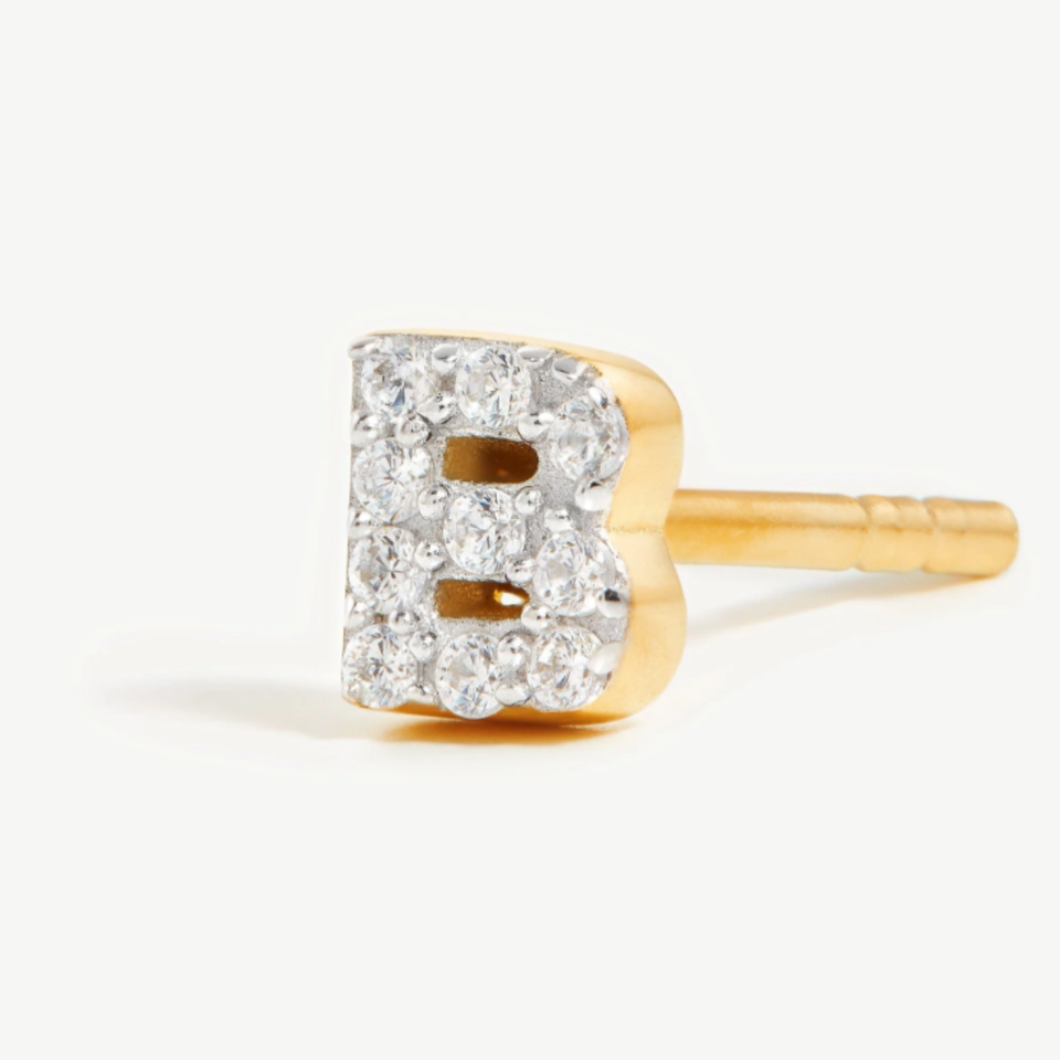 Elegant B Charm 14K Gold Filled Alphabet Stud Earrings Trending Ladies and Girls' Jewelry with Pearl and Diamond