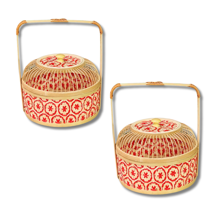 Elegant BAMBOO GIFT BASKET with Floral Design Home Decor Flower Basket Basket for Gift Packing