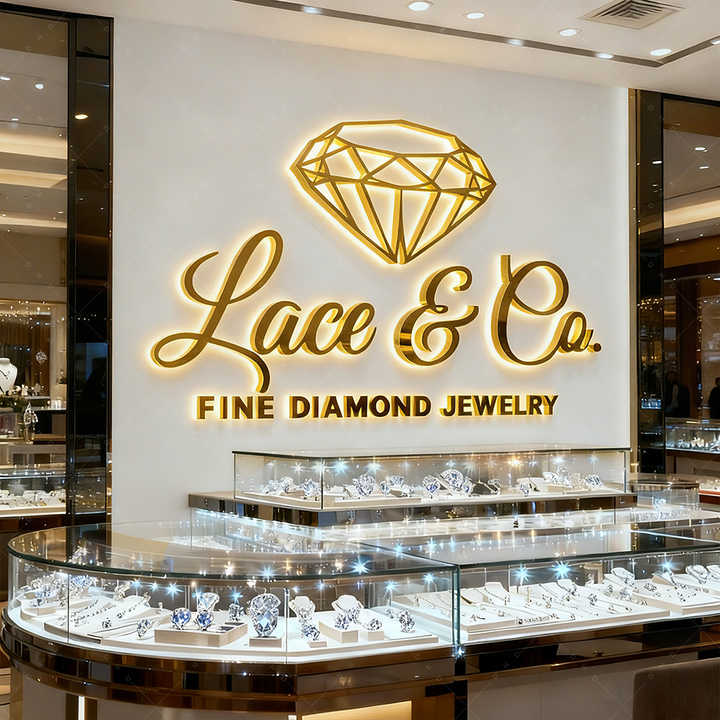 Elegant Backlit Illuminated Signage LED Letters with Diamond-Inspired Design for High-End Brand Identity Boutique Storefront
