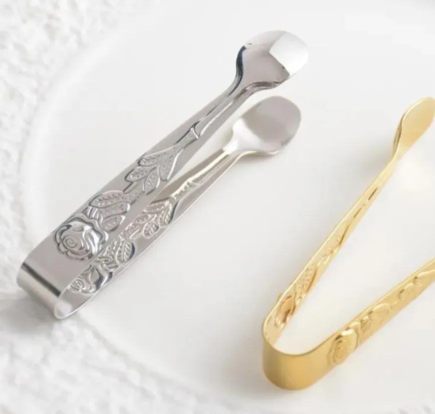 Elegant Bar Ice Tongs with Floral Engraving Secure Grip Smooth Edges Ideal for Cocktails Home Bar and Professional Use