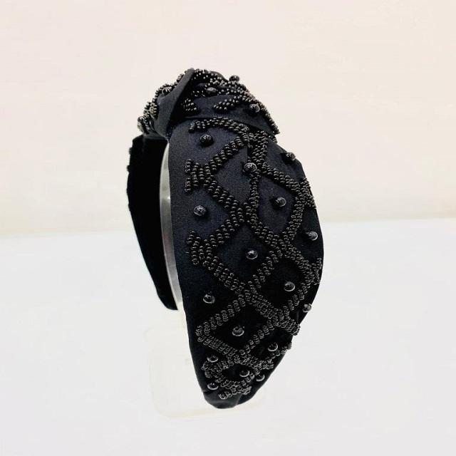 Elegant Beaded Hair Accessories for Women and Girls: Black Felt Headband with Wide Padded Sponge