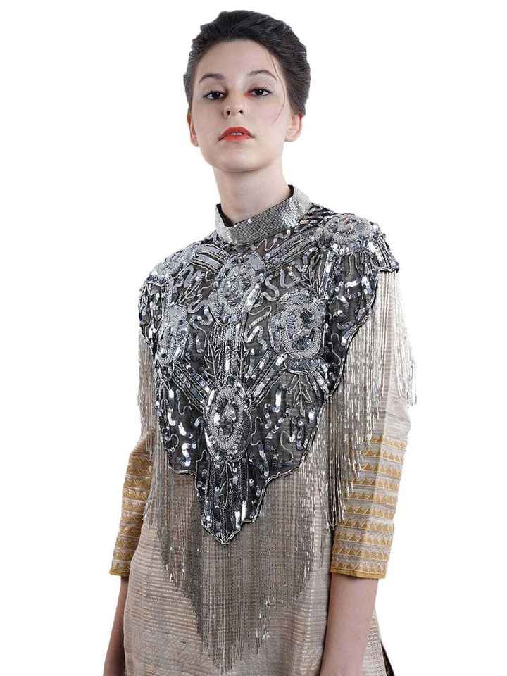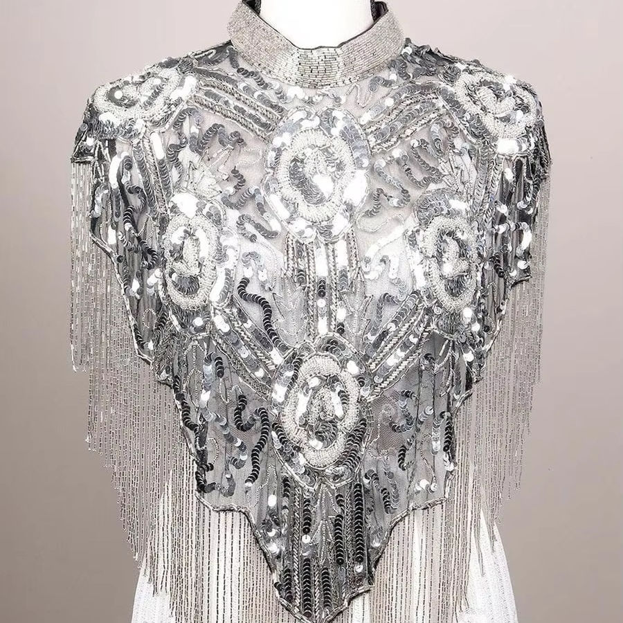 Glamorous Handmade silver Sequins Beaded Ponchos Capes Women Free Size Elegant New Year New Style Embroidery