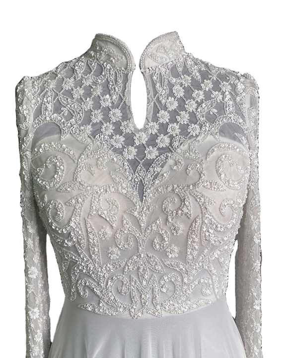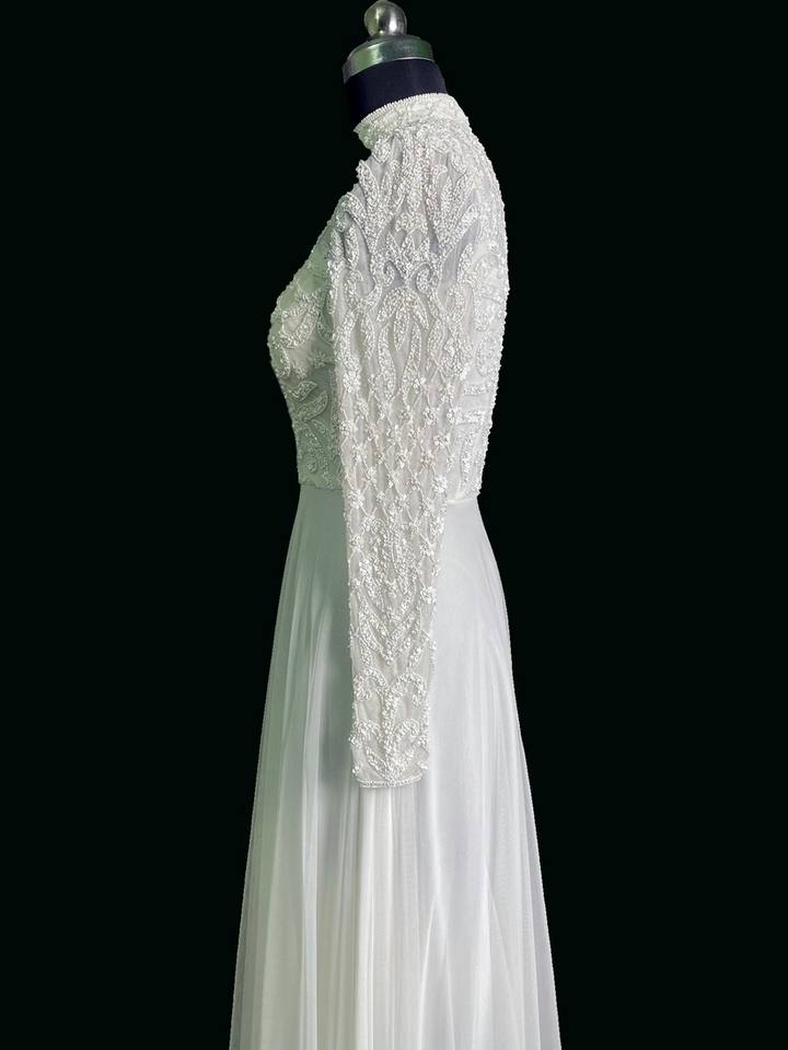 Elegant Beautiful Tulle Wedding Dress Beads Sequins Hand Embroidered Floor Length Full Sleeves Plus Size Mother Bride Maternity