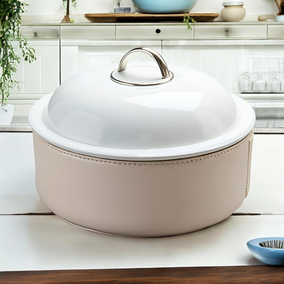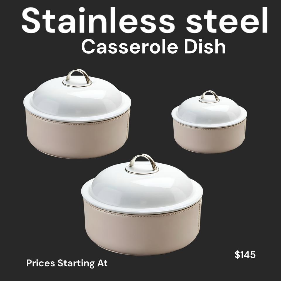 Elegant Beige Stainless Steel Casserole Dish with Lid - Modern Leather Cookware for Dining and Serving Customised Litre Capacity