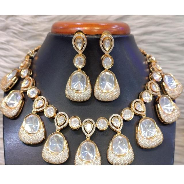 Elegant Best Quality Gold Plated Kundan Stones Look Necklace Set With Earrings Indian Wedding Party Wear Collection or Women