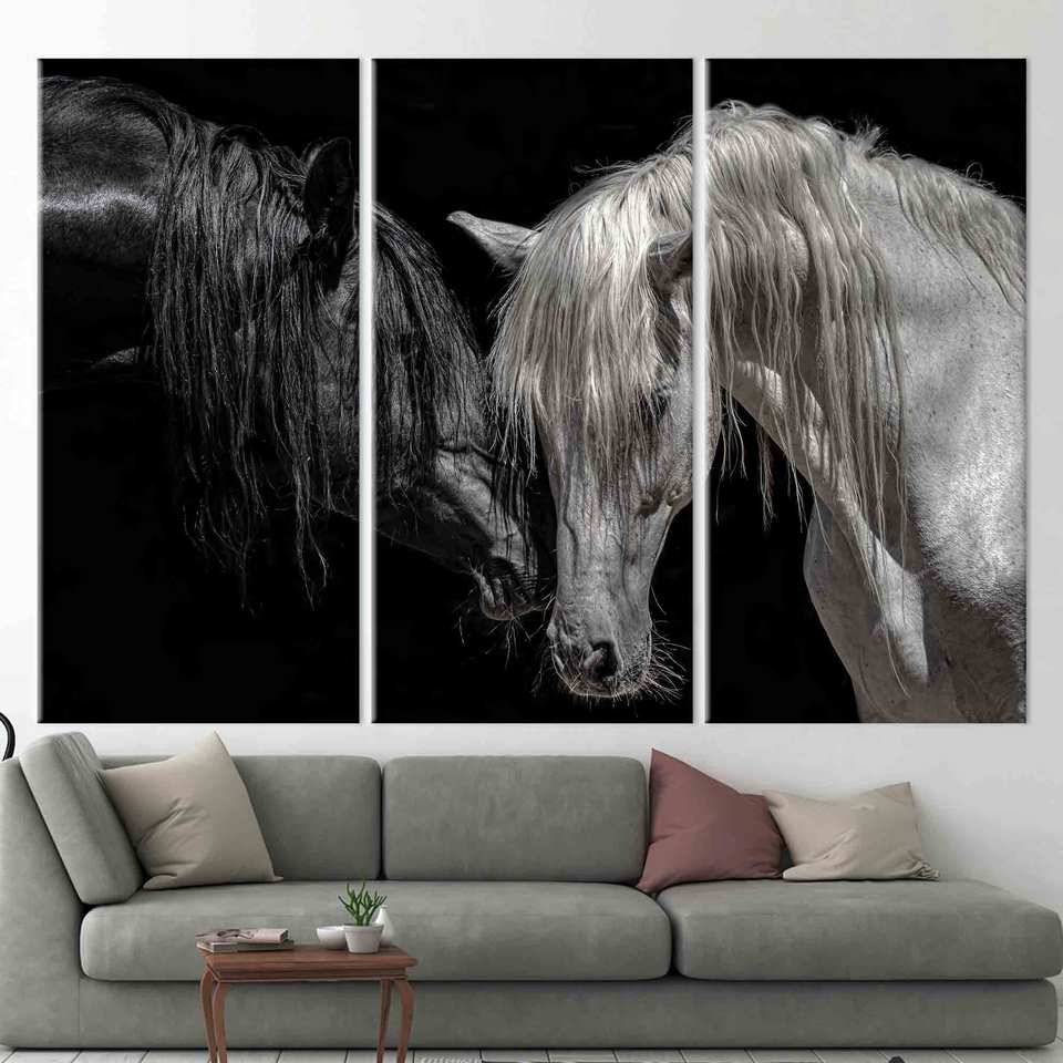 Elegant Black And White Horse Canvas Print - Modern Wall Decor,3P:Gallery Wrapped