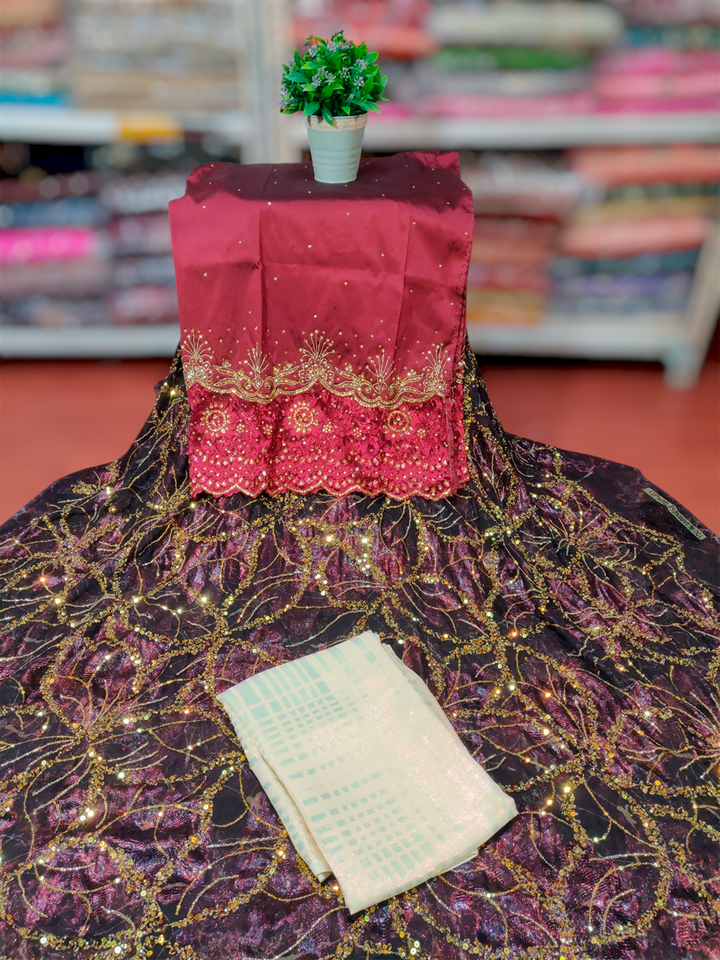Elegant Black Color Gold Stone Winter Dress Girls High Quality Floral Somali Sequence Fransawi Dirac Tube Beads Twill Jacquard