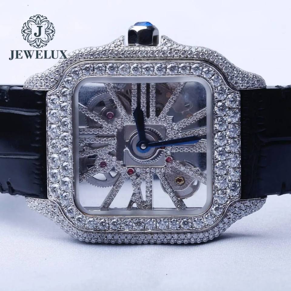 Elegant Black Dial Moissanite Diamond Watch Half Iced Out Luxury Analog Timepiece Limited Edition Stainless Steel