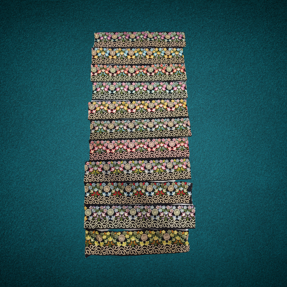 Elegant Black Floral Embroidered Lace Tulle Trim Intricate Detailing for Sophisticated Bridal Gowns and Evening Wear