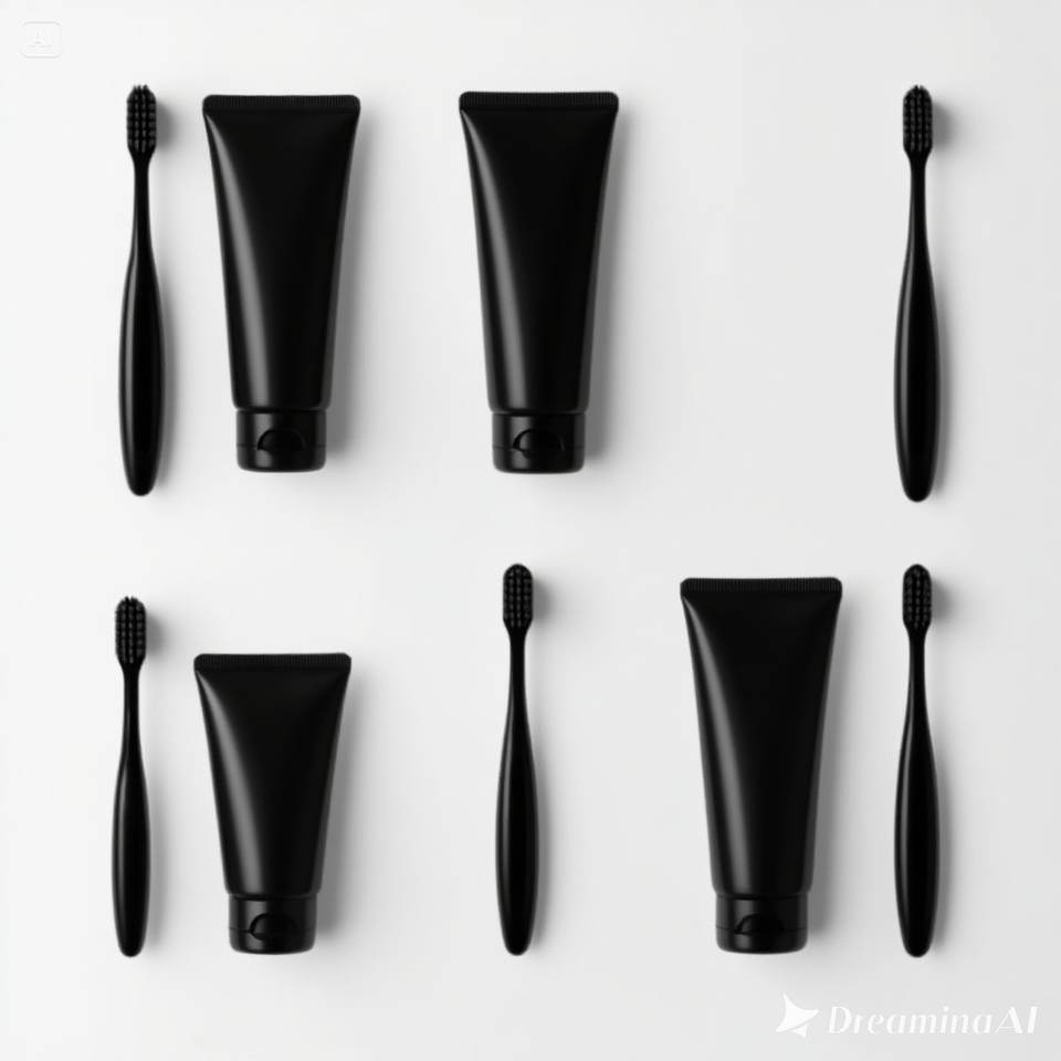 Elegant Black Hotel Toothbrush Kit | Minimalist Oral Care Set with Toothpaste and Travel Case 50 Box Customize