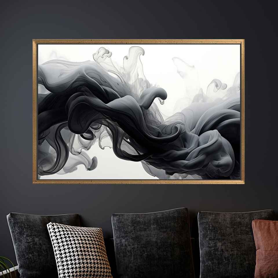Elegant Black Ink Smoke Canvas Print for Modern Minimalist Decor,1P:Gold Framed