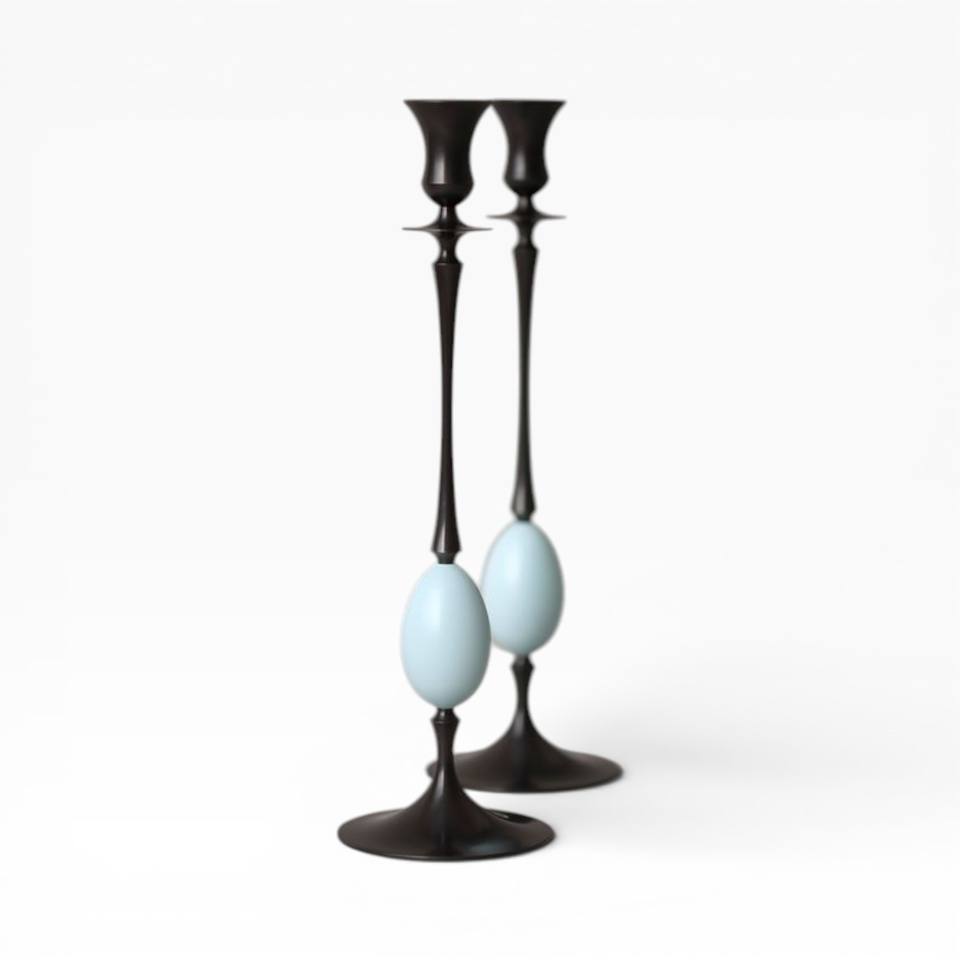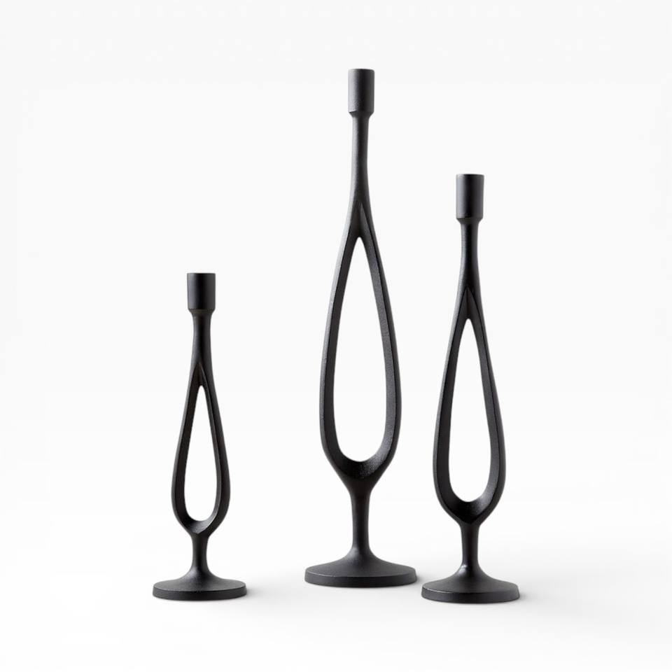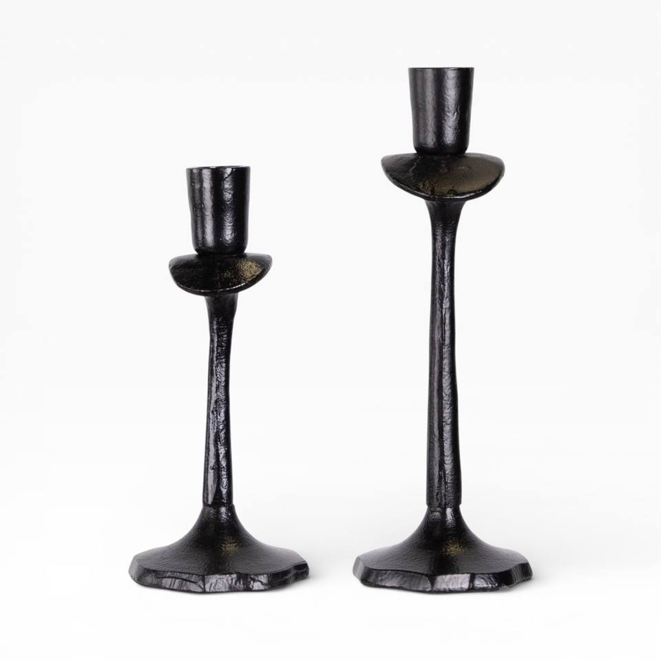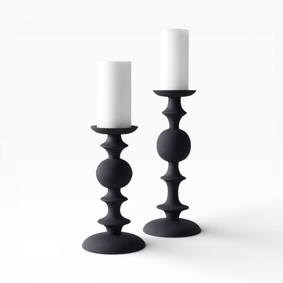 Elegant Black Metal Taper Candle Holders Pair With Textured Finish For Bold Modern Decor Unique