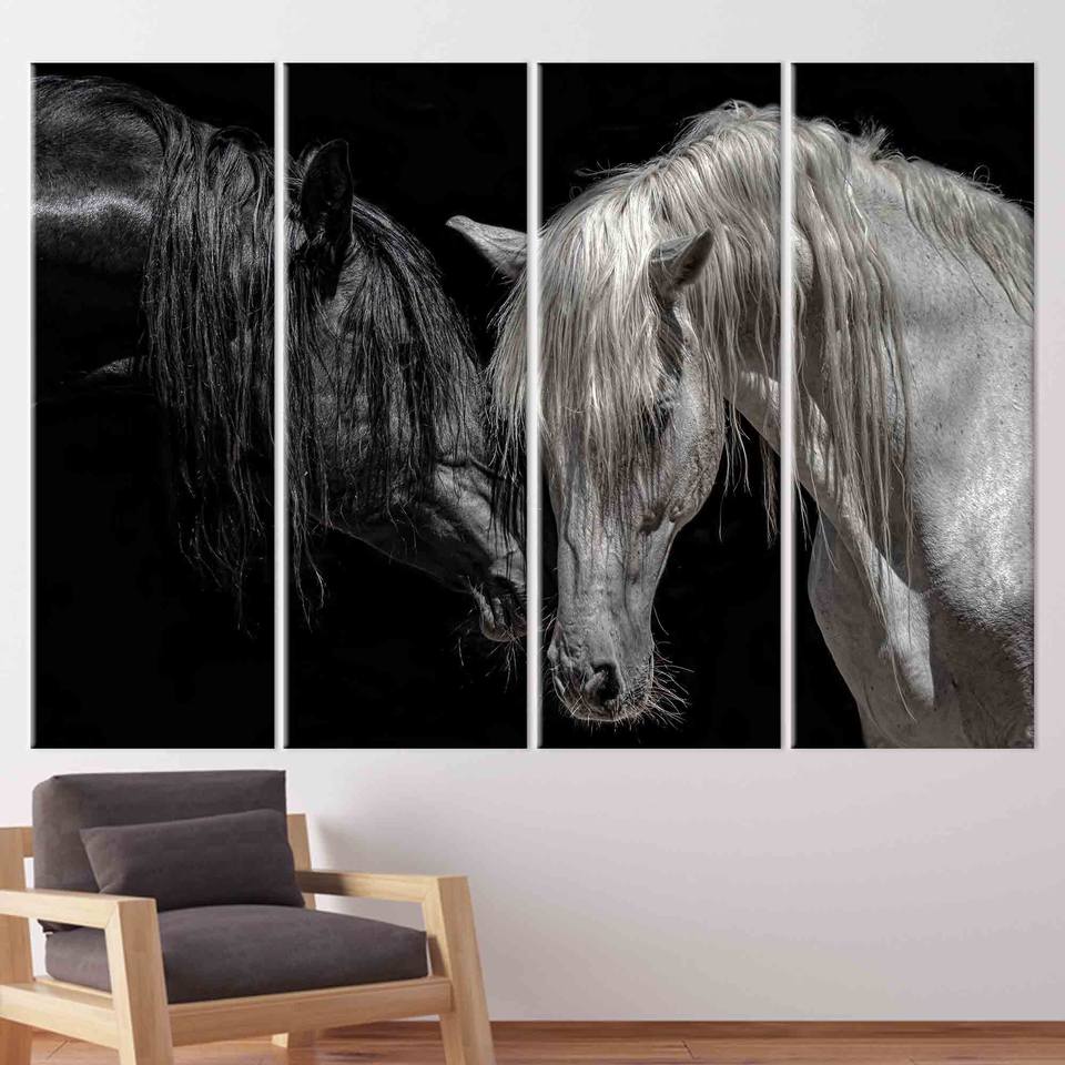 Elegant Black and White Horse Canvas Print, Modern Wall Decor,4P: Gallery Wrapped