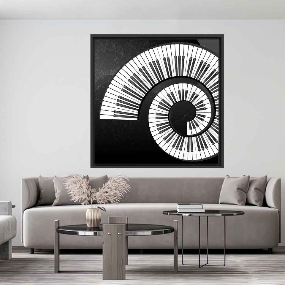 Elegant Black and White Printed Canvas - Modern Music Decor,Black Framed