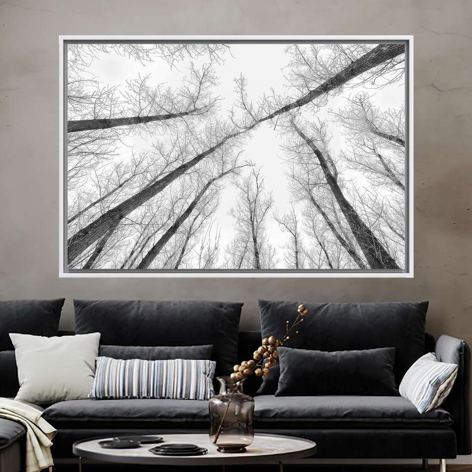 Elegant Black and White Tall Trees Art Canvas Print for Home Decor,1P:White Framed