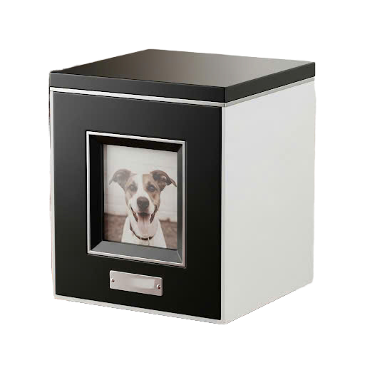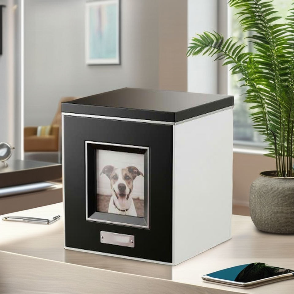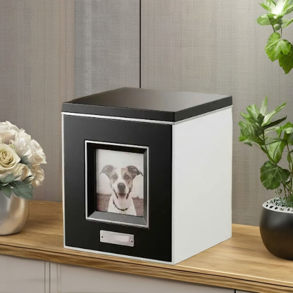 Elegant Black and White Wooden Pet Urn with Photo Frame Memorial Box for Dog or Cat Ashes Made in Viet Nam