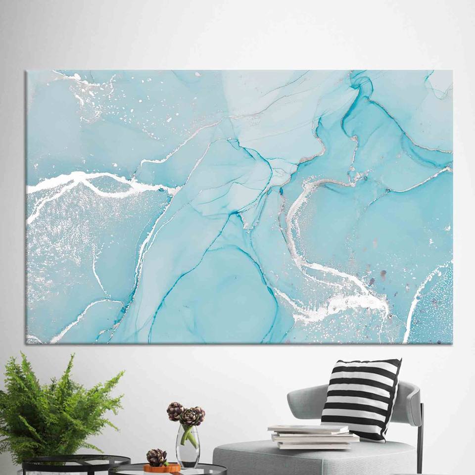 Elegant Blue Alcohol Ink Canvas Print: Silver Marble Home Art,WRAPPED CANVAS