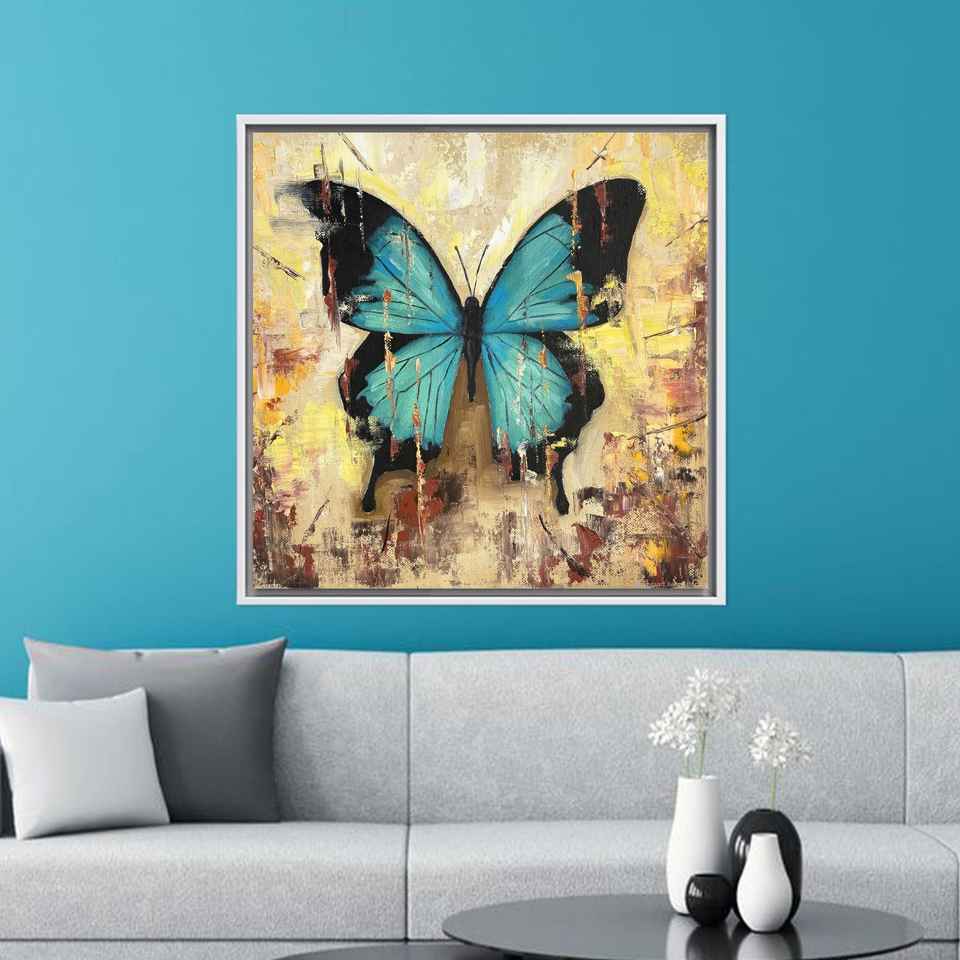 Elegant Blue Butterfly Printed Canvas Artwork for Wall Decor,White Framed