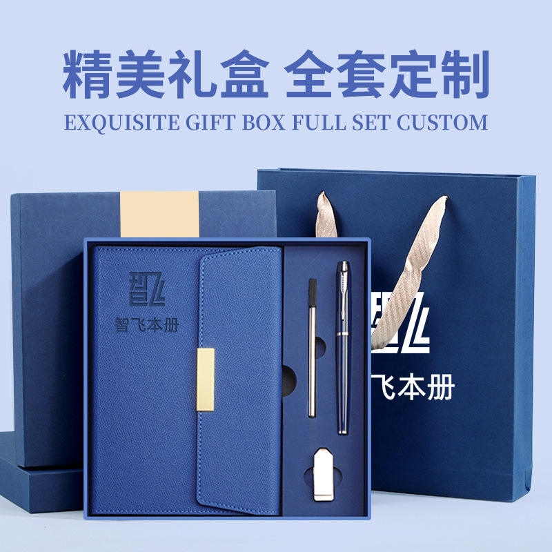 Elegant Blue PU Leather Notebook Business Gift Set With Gold Clasp Personalized Office Stationery Custom Logo Promotional Item