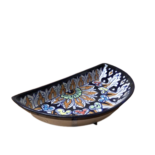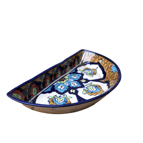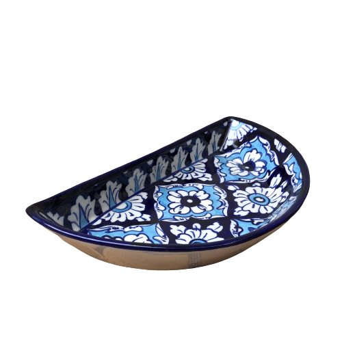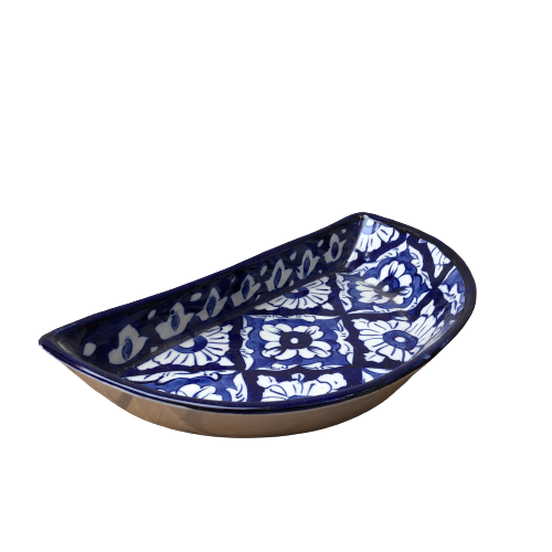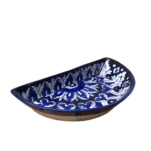 Elegant Blue Pottery Ceramic Blue Felicity Unique Dish, Wholesale Hand Painted Serving DIsh, Blue Pottery Serving Dish
