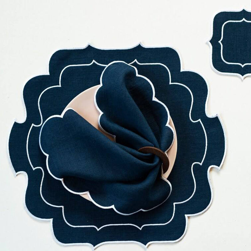 Elegant Blue Spring Flower Cotton Tablecloth Set with Durable Napkins Korean Style PVC Placemats and Napkins