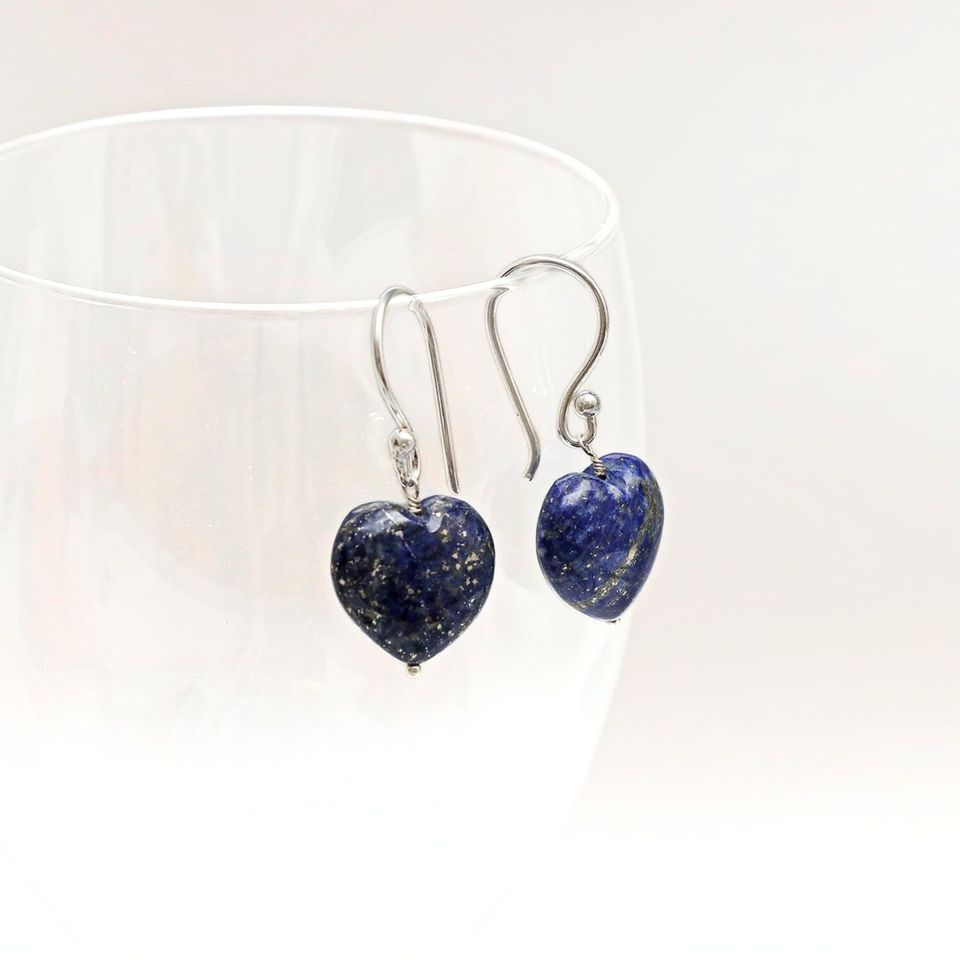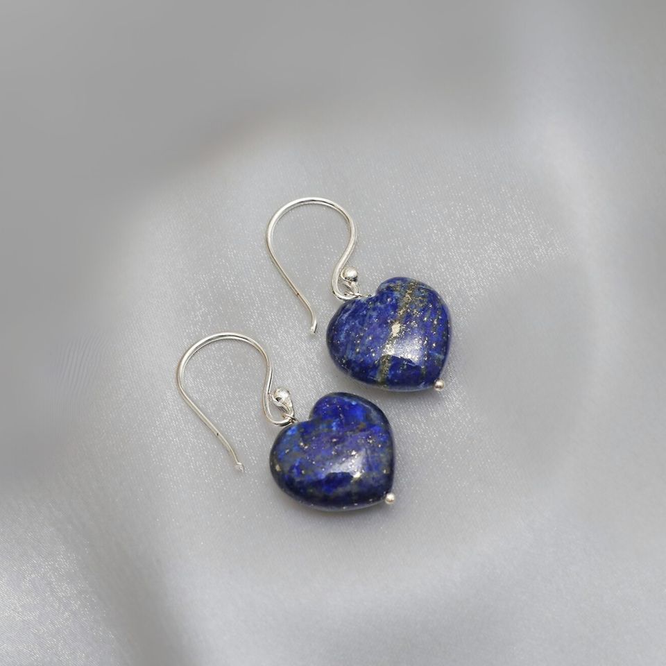 Elegant Boho-Chic Statement Jewelry for Women Handmade Lapis Lazuli Heart Drop Earrings Gold-Plated Gemstone Fashion Earrings