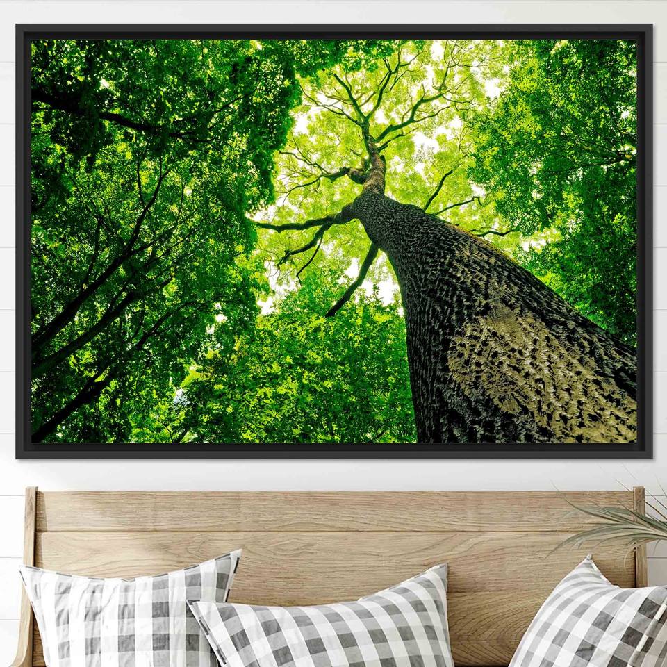 Elegant Boho Decor: Printed Canvas Artwork with Green Tree Landscape,BLACK FRAMED CANVAS
