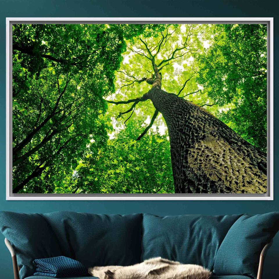 Elegant Boho Green Tree Landscape Printed Canvas Wall Art,WHITE FRAMED CANVAS