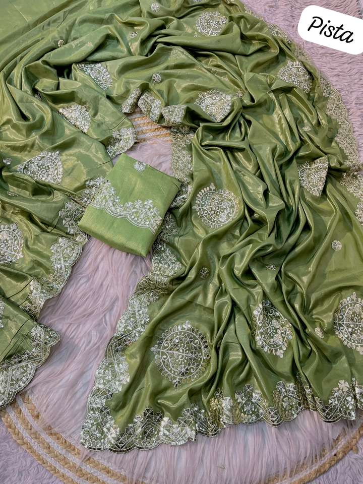 Elegant Women's Bollywood Indian Blooming Chocolate Silk Saree with Embroidery Foilgotapatti Work Traditional Design Made India