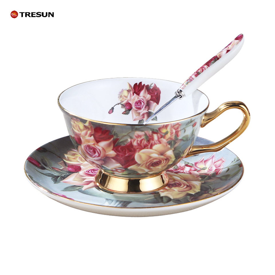 Elegant Bone China Coffee Cup and Saucer Set for Luxury Tea Time Experience