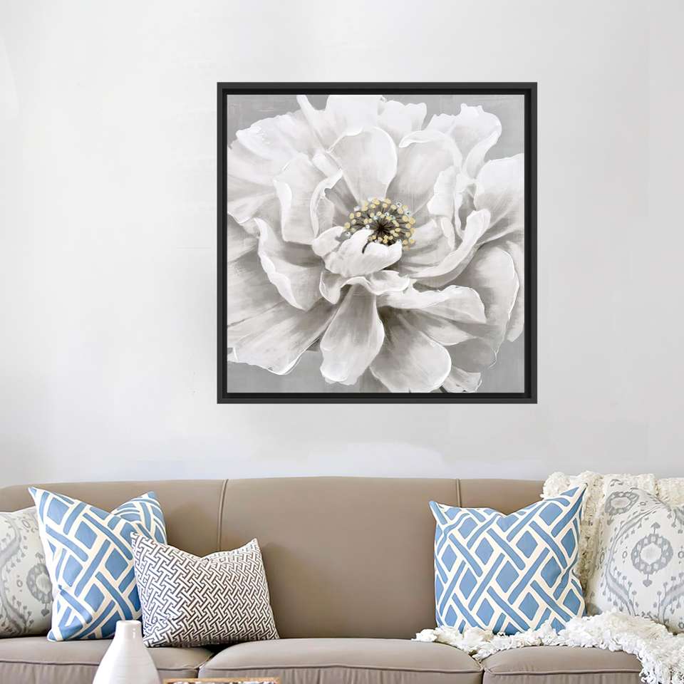 Elegant Botanical Canvas Print: Large White Flower Art for Home Decor,Black Framed