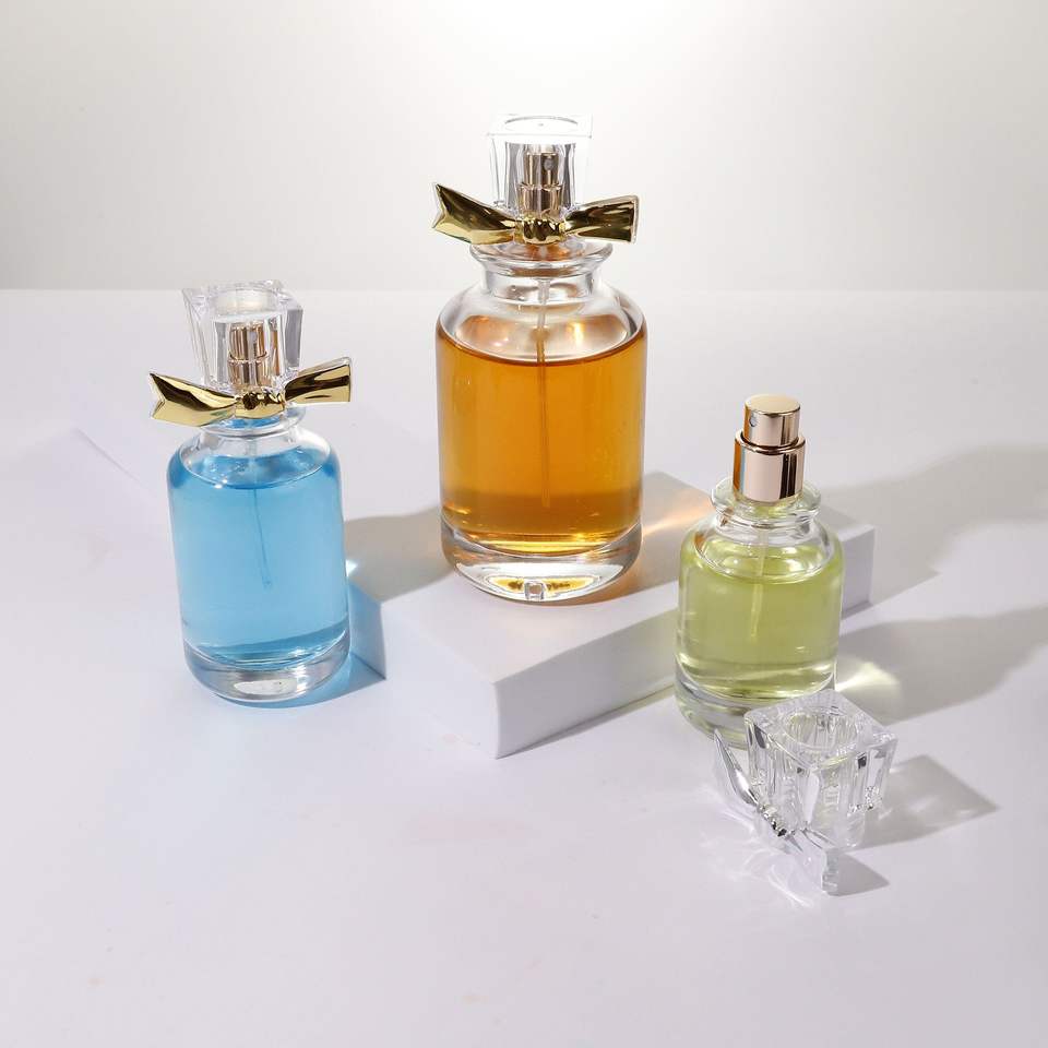 Elegant Bow Clear Glass Perfume Bottle 25ml 50ml 100ml Bayonet Spray Bottle