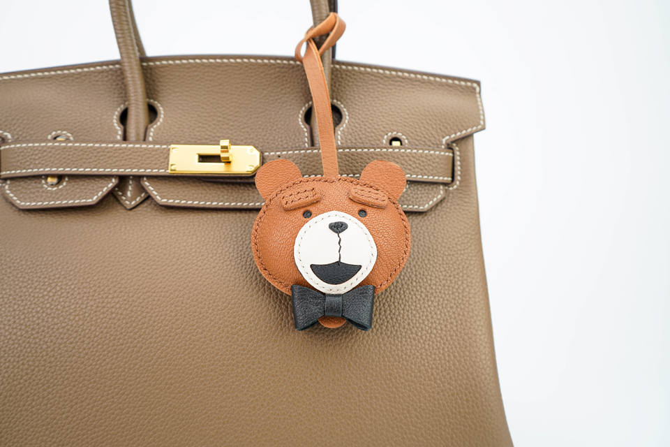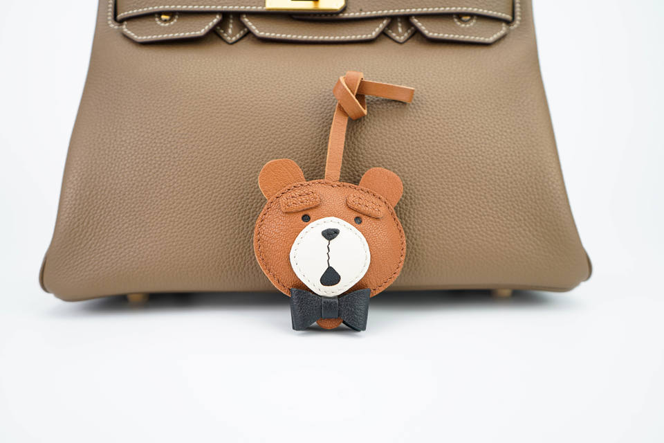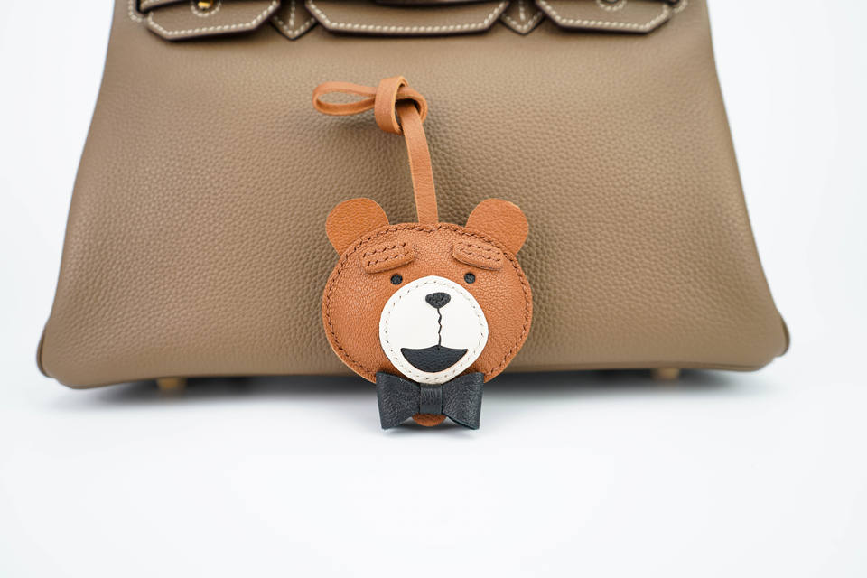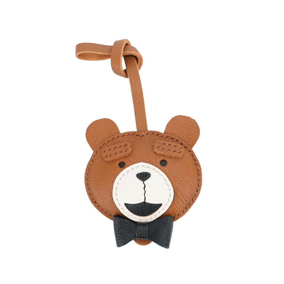 Elegant Bowtie Bear Leather Bag Charm with Contrast Facial Detail