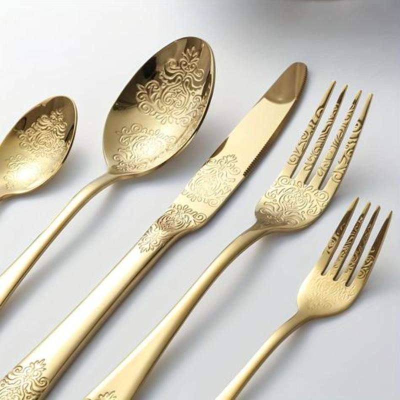 Elegant Brass Cutlery Set with Top-quality Design Work Perfect for Affordable Gifting or Stylish Dining Experiences