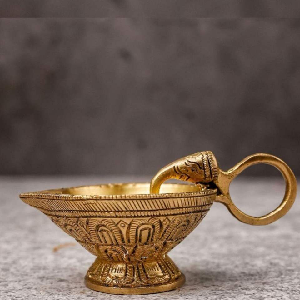 Elegant Brass Gajah Diya Oil Lamp Unique Spiritual Accessory