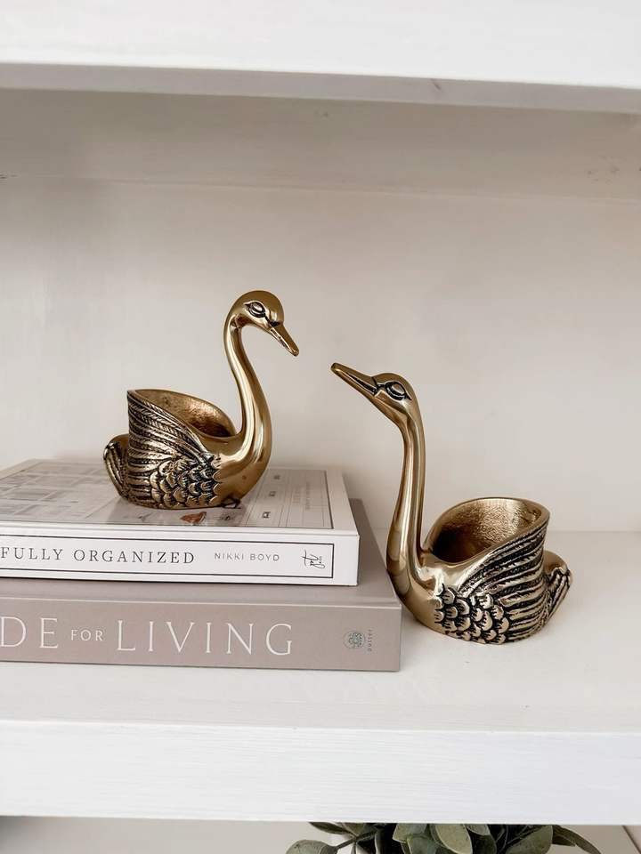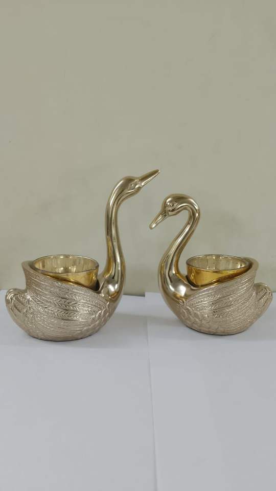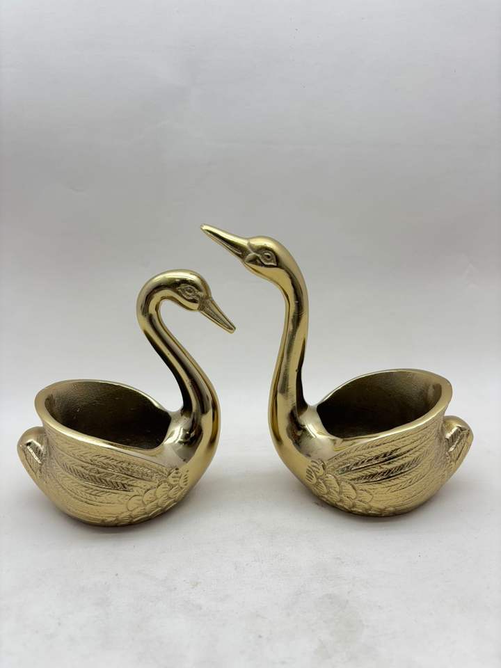Elegant Brass Swan Shaped Decorative Planter & Candle Holder From India