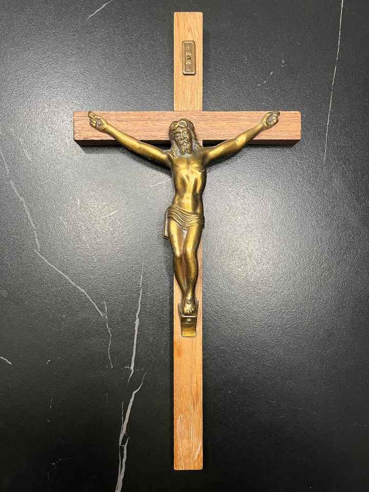 Elegant Brass and Wooden Crucifix Christian Cross Wall Decor Religious Hanging for Church Home Prayer Area