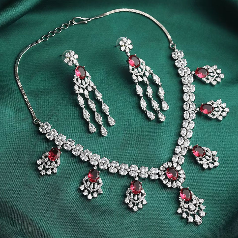 Elegant Bridal AD Necklace Set for Women With Matching Earrings Available at Export Prices from India