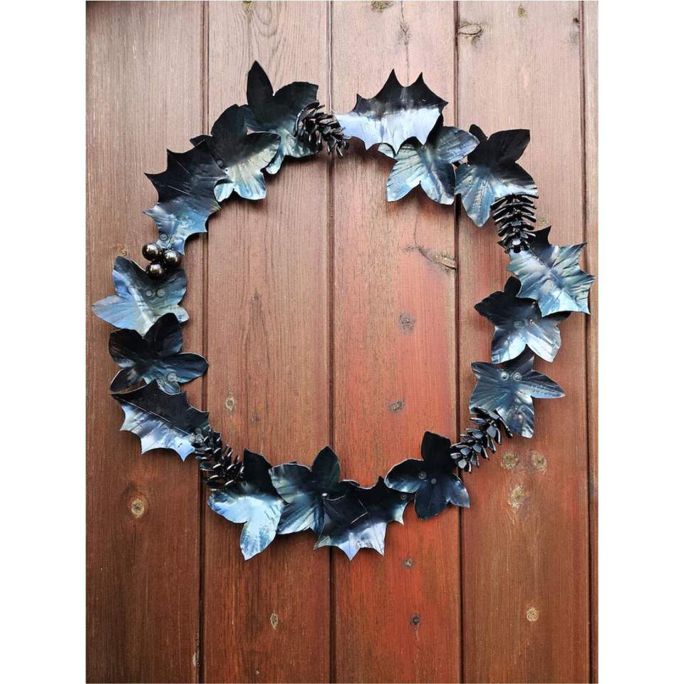Elegant Bronze Oak Leaf Wreath with Green Ribbon Harvest Festival Wall Decor Premium Indoor Outdoor Hanging Ornament Wall Wreath