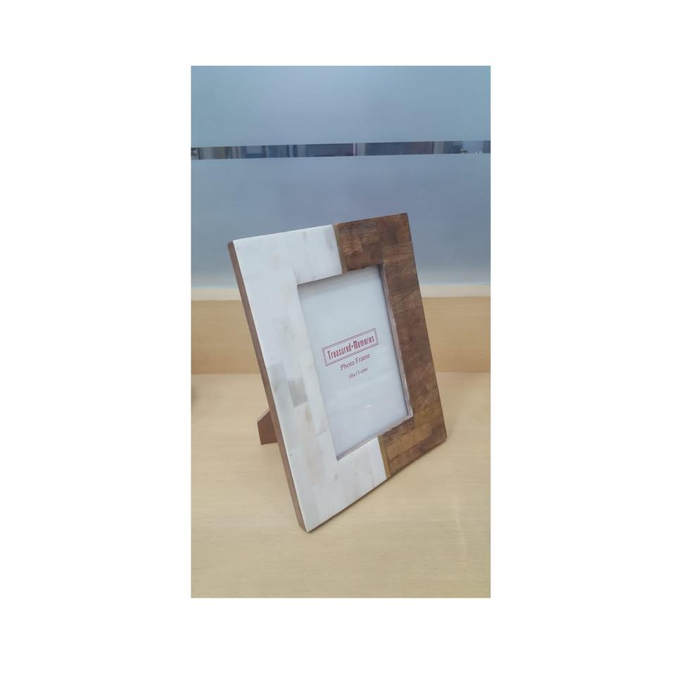 Elegant Brown & White Square Decorative Photo Frame with Horn Bone & Resin Wood for Living Room & Office