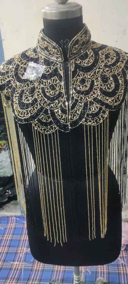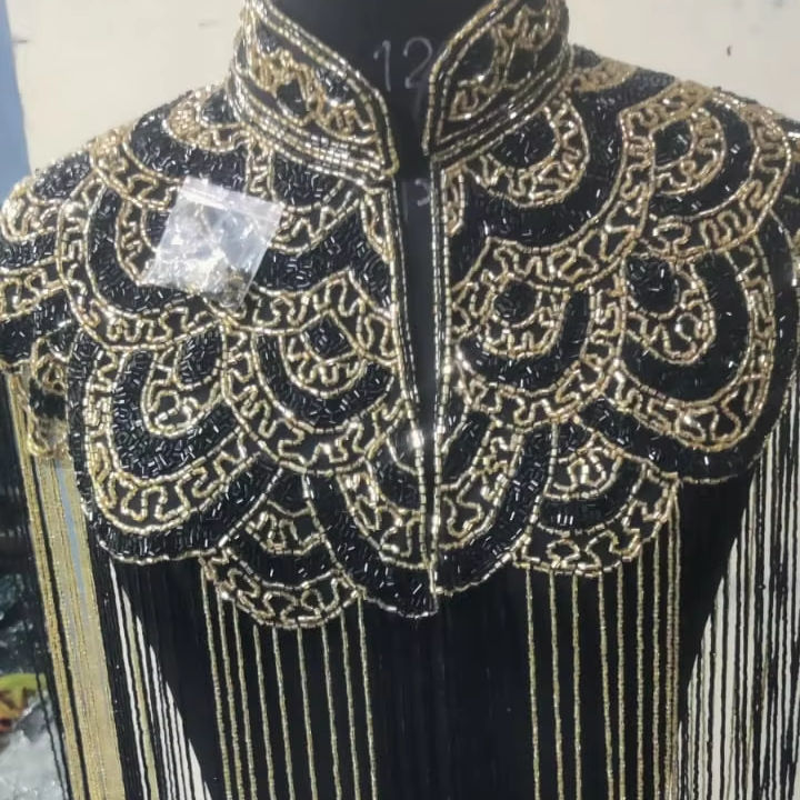 Elegant Burlesque Cape Beaded Strands Sequins Beautiful Straight Outfit for Festive Clubs Pearl Neck Fastening Logo Back Natural