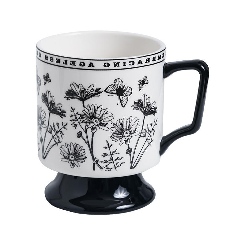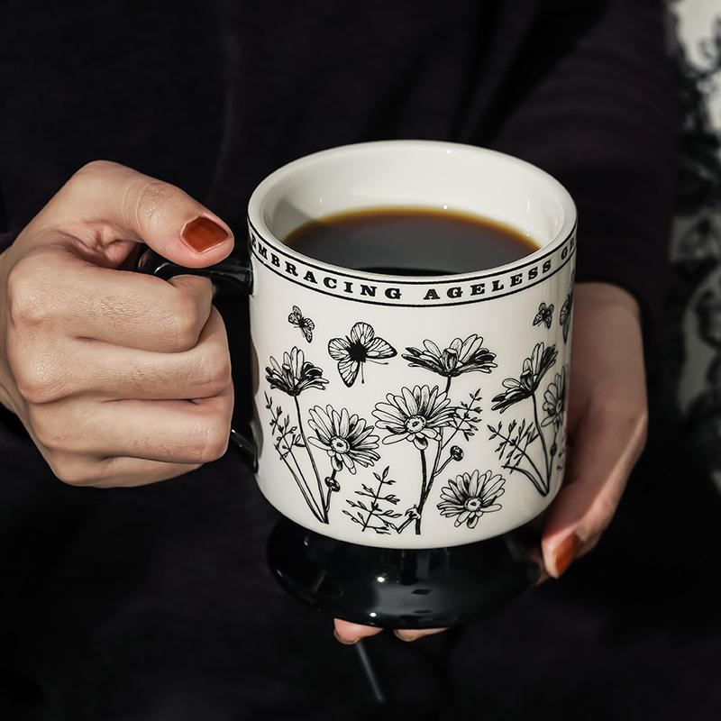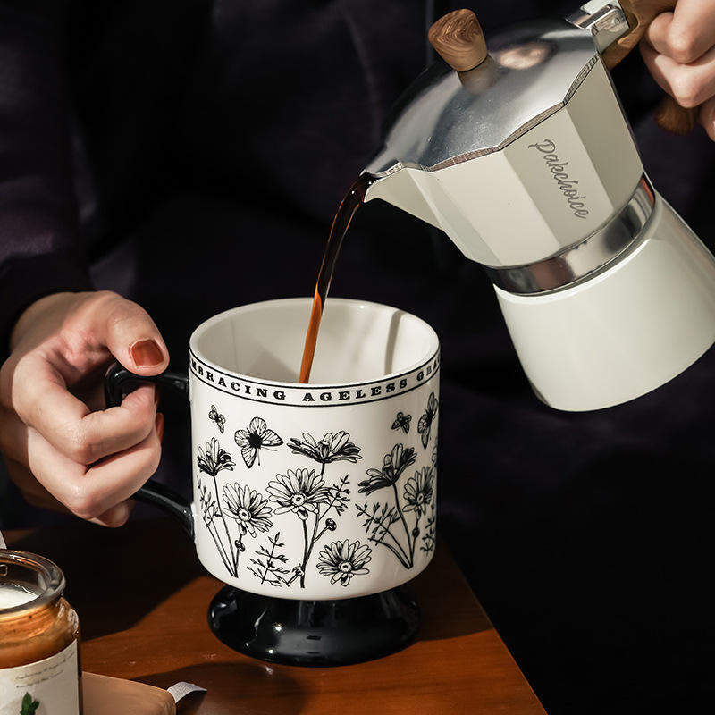 Elegant Ceramic Mug With Floral Pattern 12 Oz Coffee Tea Cup Office Gift Nordic Style Handled Cup