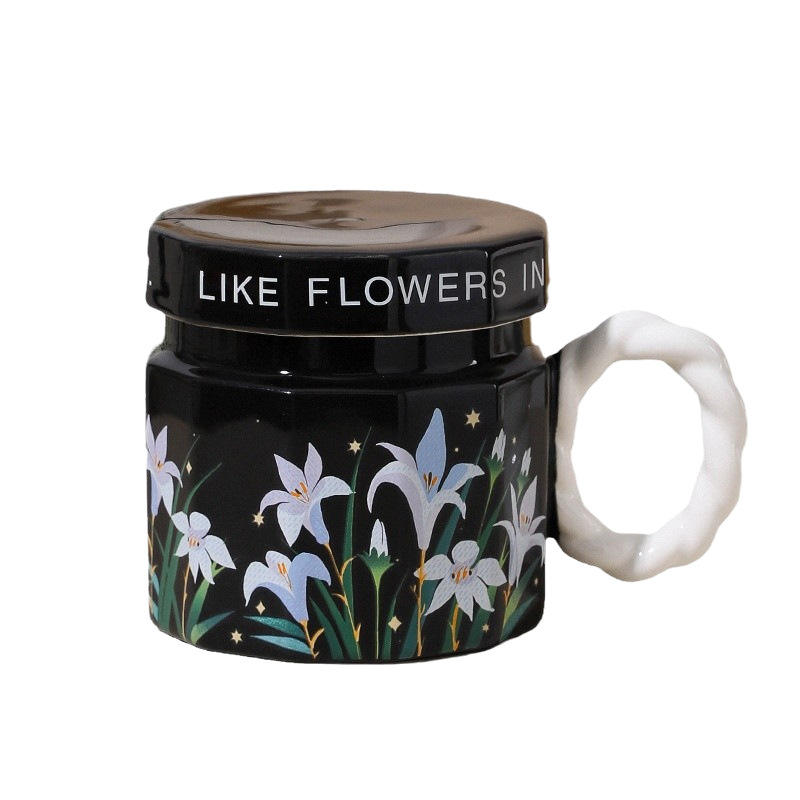 Elegant Ceramic Mug With Lid 301-400ml Reusable Gift For Office Coffee Breakfast