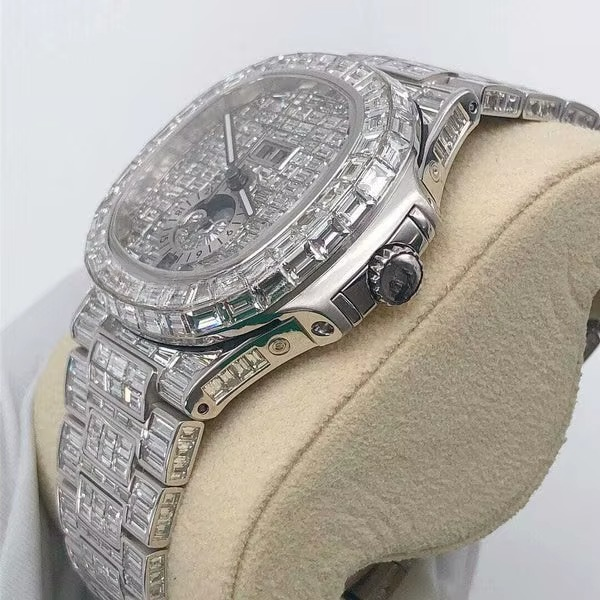 Elegant Certified Baguette VVS Moissanite Diamond Iced Out Hip Hop Mechanical Automatic Movement Wrist Watch For Men From India