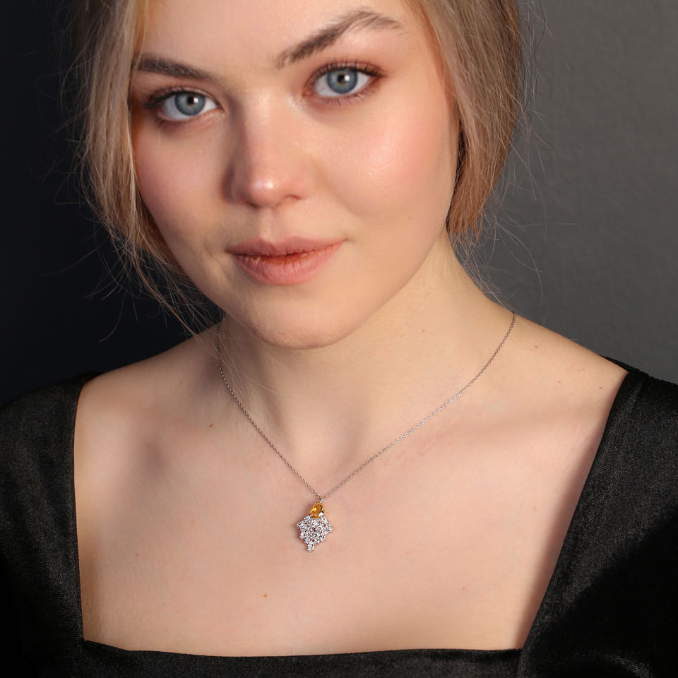 Elegant Charm Necklace Citrine Stone with Marquise Zircon Stone Design Necklace 925 Sterling Silver Jewelry