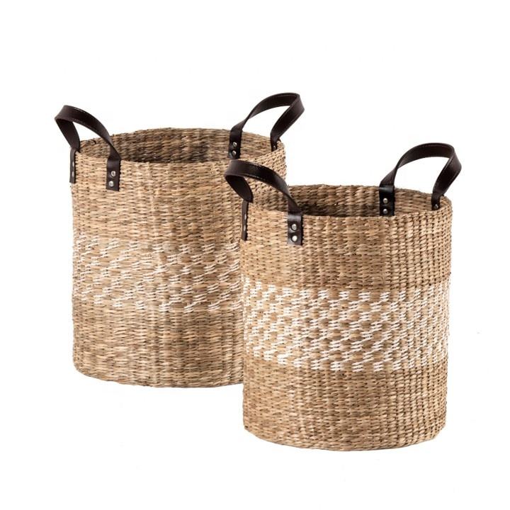 Elegant Choice Seagrass Hand Woven Basket Set Natural Seagrass Laundry Basket Crafted Handwoven Baskets