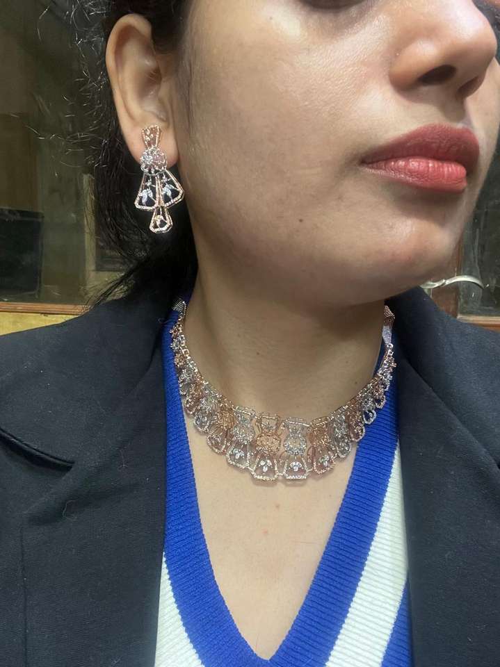 Elegant Classic Rose White Gold 14K IGI Certified Natural Rhodium Plated Choker Diamond Necklace Set for
