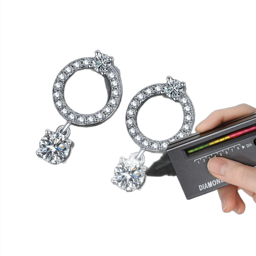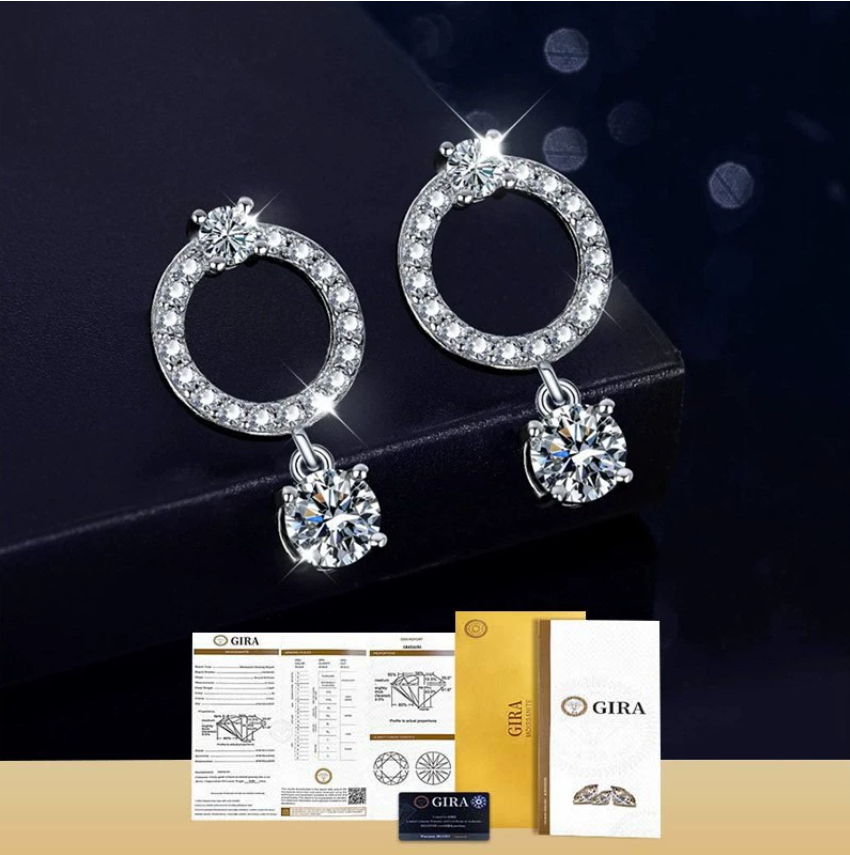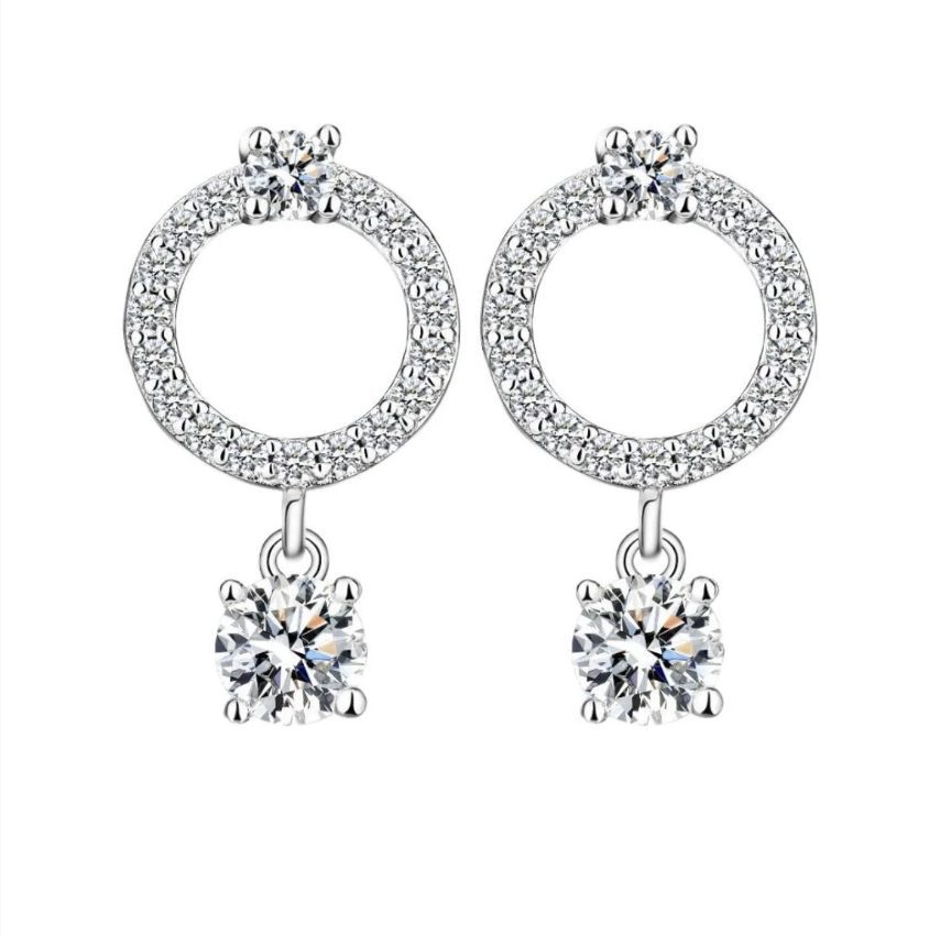 Elegant Circle - Shaped Moissanite Drop Earrings With Sparkling Crystals For Romantic Daily Wear And Special Occasions